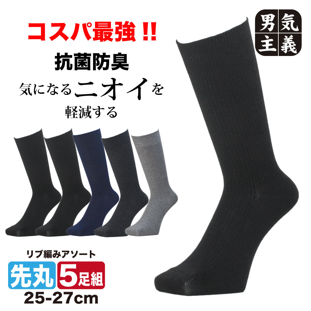 靴下 メンズ 破れにくい 3足セット ガチ頑丈 先丸ソックス 作業用 安全靴 丈夫 抗菌 防臭 クルー丈 黒 25-27cm